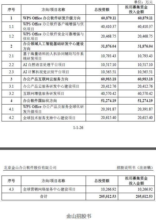 最后附上此次募集资金,金山想要做的项目,祝好。